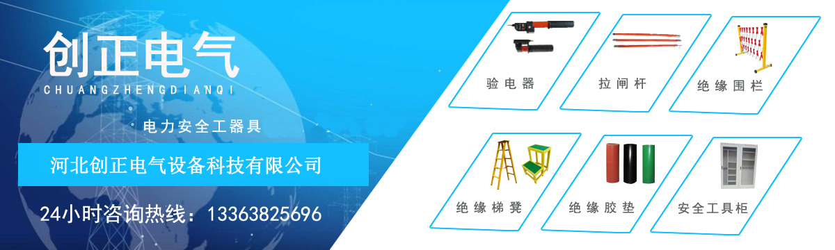 河北創(chuàng)正電氣設(shè)備科技有限公司主要經(jīng)營(yíng)產(chǎn)品包括:高壓驗(yàn)電器、高壓接地線、高壓拉閘桿、絕緣橡膠墊、絕緣伸縮圍欄、絕緣梯、安全工具柜、絕緣凳、擋鼠板、安全警示帶、絕緣臺(tái)、安全帶、腳扣、安全帽、標(biāo)識(shí)牌、絕緣手套、絕緣靴等電力安全工器具。公司以“服務(wù)電力系統(tǒng),努力永無(wú)止境”為目標(biāo),以“人才就是生產(chǎn)力”為戰(zhàn)略,以經(jīng)驗(yàn)為依托,以理念為指導(dǎo),以員工為基礎(chǔ),以市場(chǎng)為支撐,貫徹“以顧客需求為上”的經(jīng)營(yíng)理念,以合格的質(zhì)量,合理的價(jià)位,適應(yīng)市場(chǎng)的需求。 [詳細(xì)介紹]